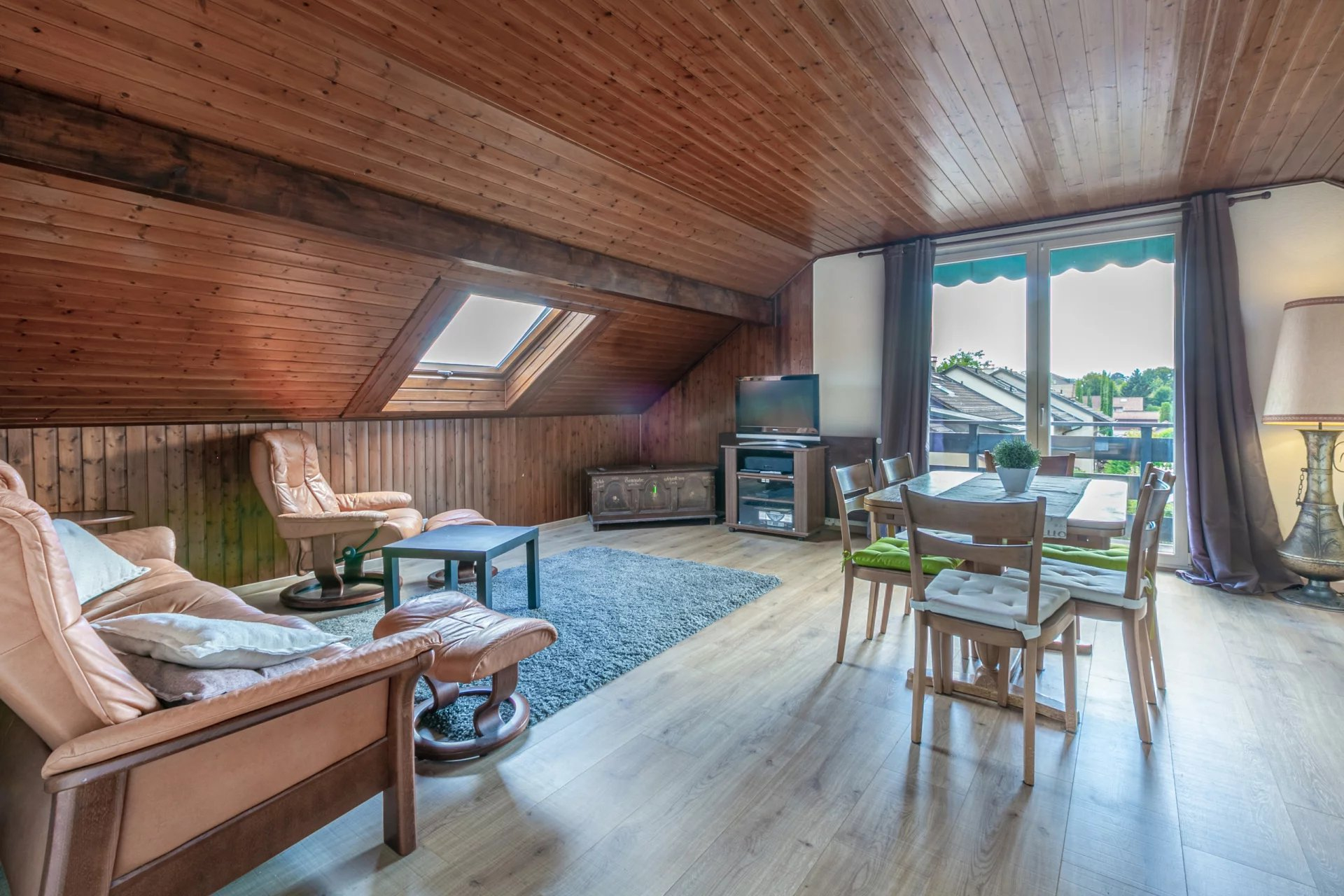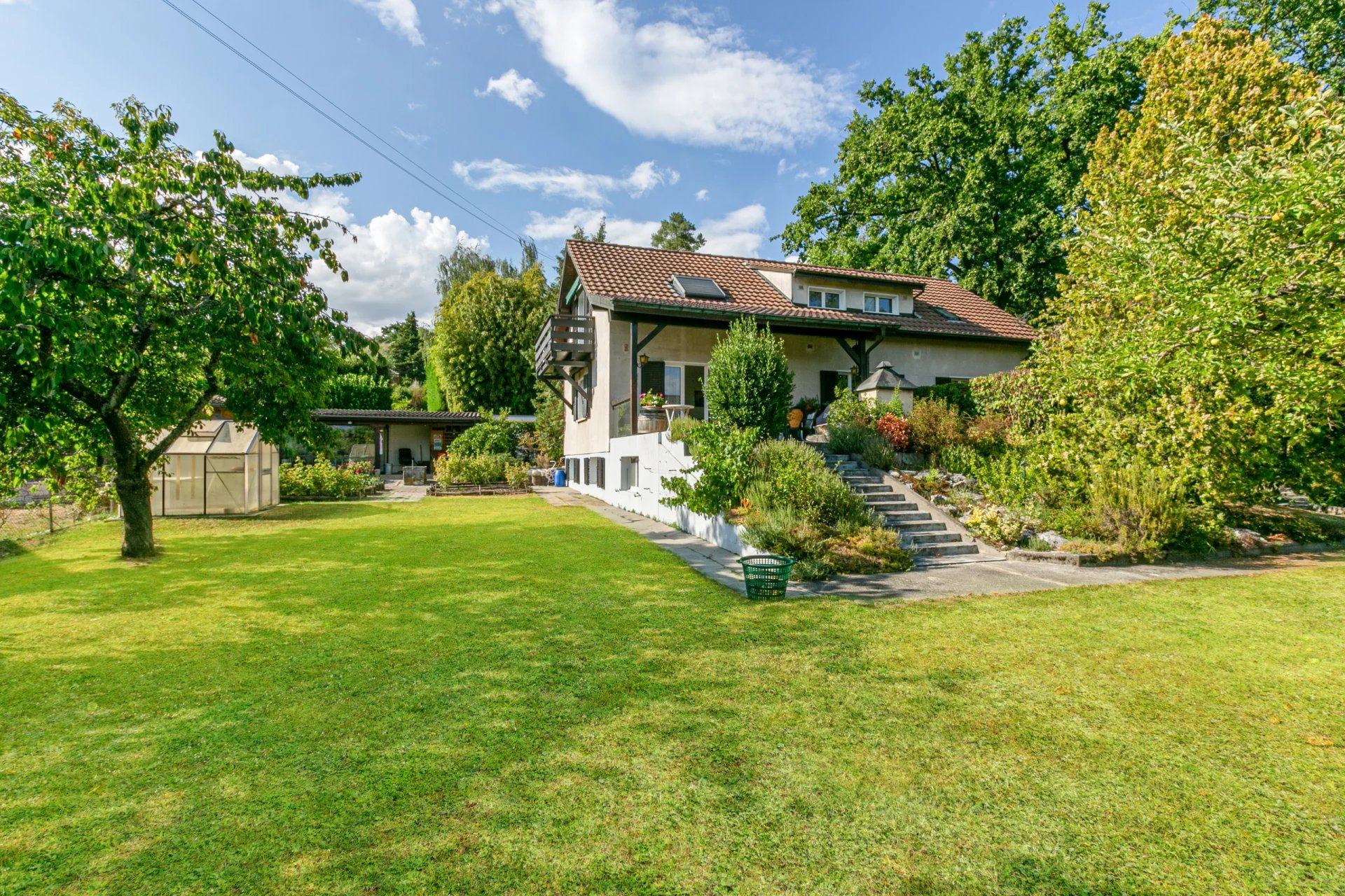 The lower ground floor, with windows at garden level, offers a spacious carnotzet, a multi-purpose room, a bedroom, a small bathroom, the technical room/laundry room, a cellar and a garage with automatic door