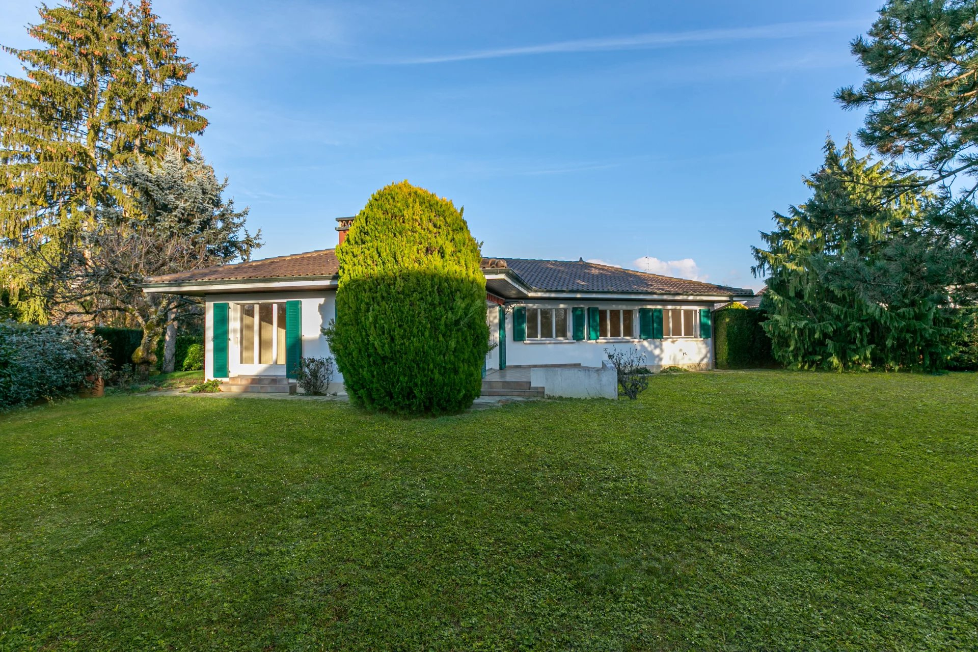 This property is located in a quiet and green residential area while being close to amenities. Offering a beautiful area of 150m2 on the ground floor and around 300m2 in total (ground floor and basement), it is located on a magnificent flat and fully wooded plot of 1,190m2.