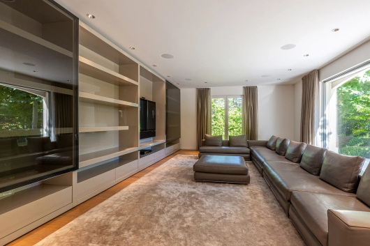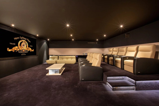 The basement includes a large relaxation room, a wine cellar, a staff area and a movie theater.