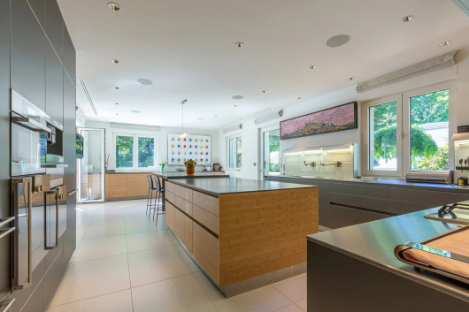 Several garages and covered parking spaces complete the house.