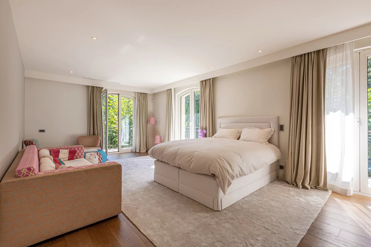 The house has two lounges / living rooms, a dining room open onto the terrace, a large fully equipped kitchen with opening onto the garden, an office, a total of 10 bedrooms and their ensuite bathrooms, including a master bedroom master bedroom including a splendid bathroom, a balcony and a large dressing room.