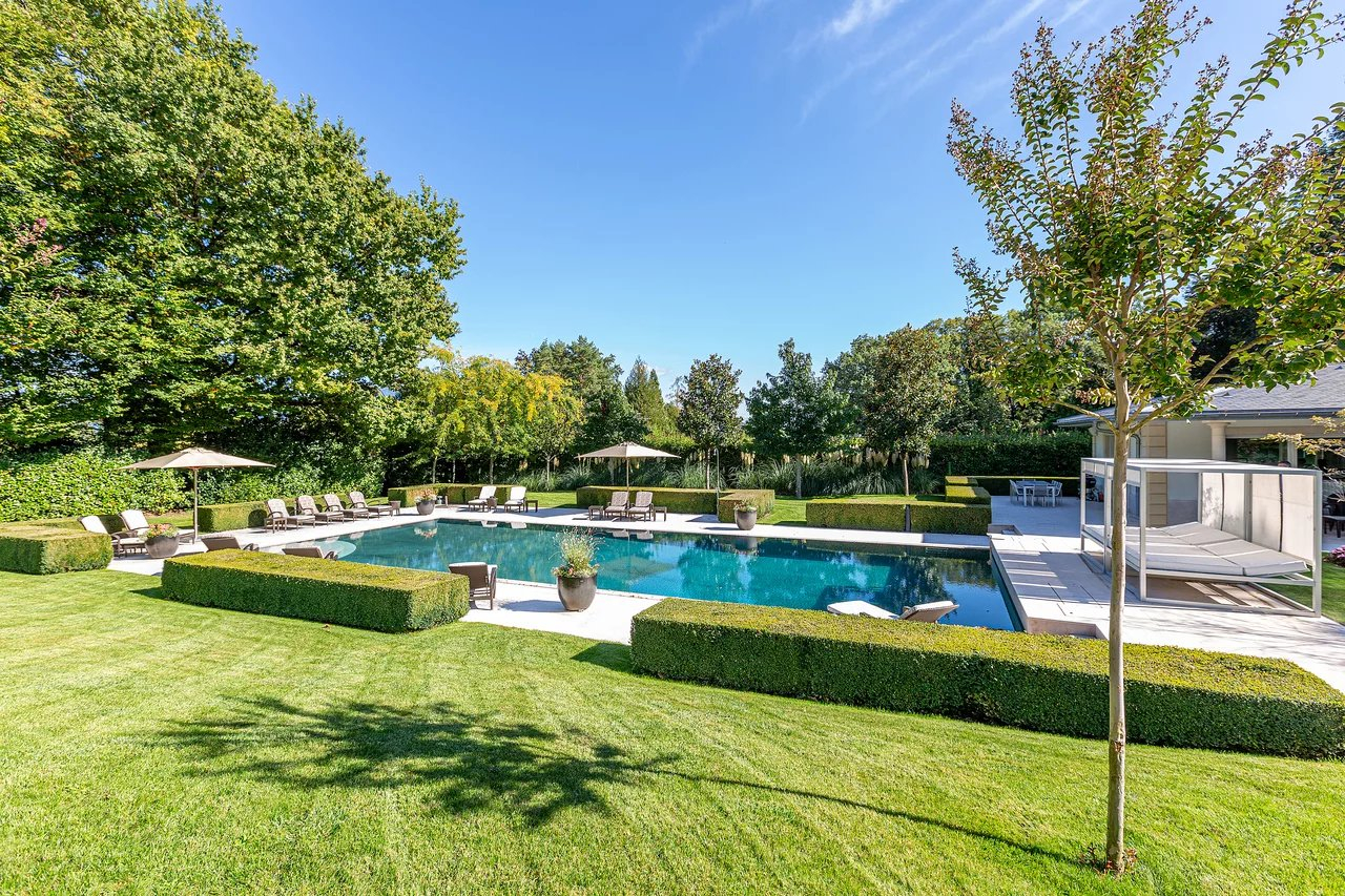 The garden offers a superb swimming pool, a playground area for children and a basketball court. The pool house includes a gym.