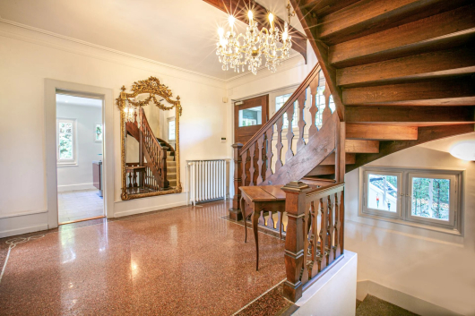 It is composed as follows: spacious entrance hall, fully equipped kitchen, dining room with access to the veranda and garden, living room with fireplace, office.