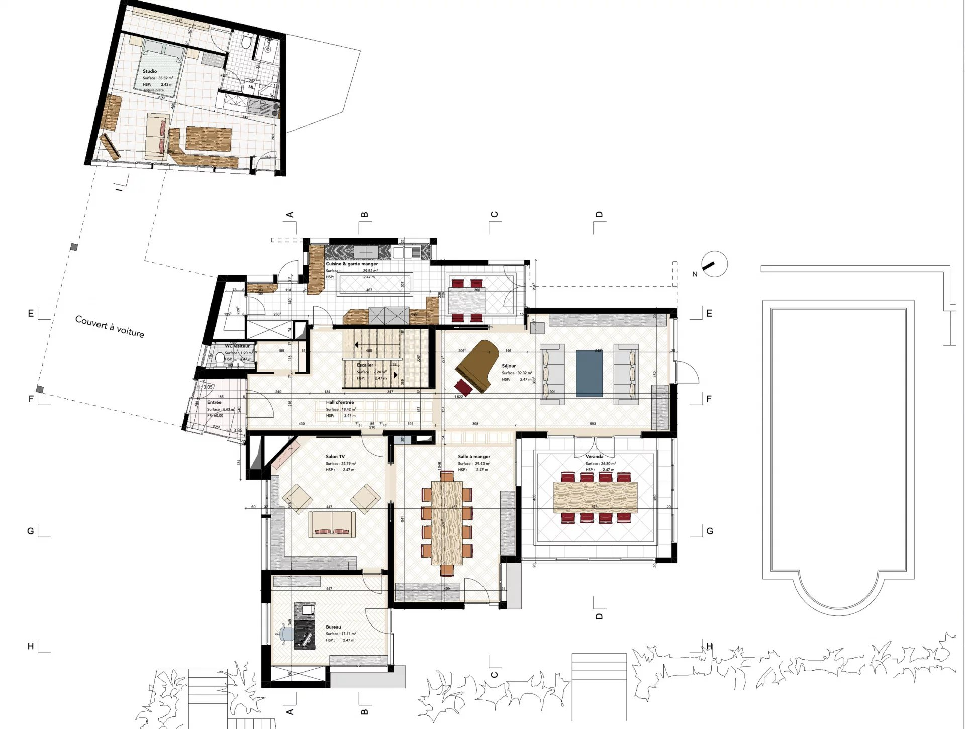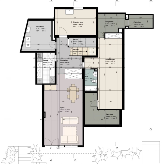 Bathed in light, offering a living area of 330m2 and 540m2 useful, with reversible floor heating, and photovoltaic panels it is distributed as follows: