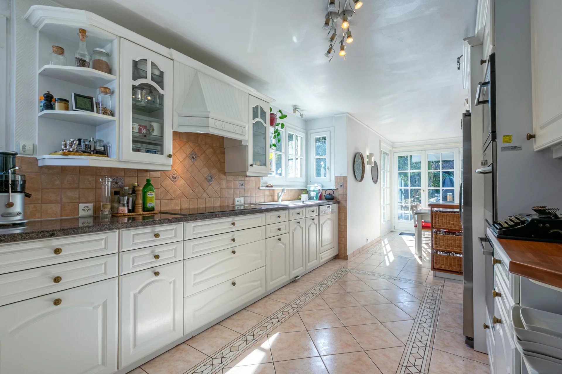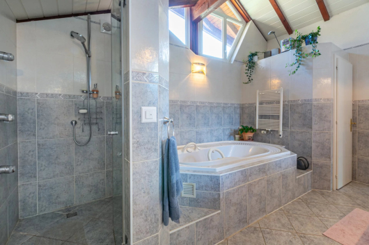 On the ground floor, the living area consists of a large living room with access to the heated veranda, a dining room, a kitchen with dining area. A second living room opens onto a study which could be converted into a bedroom. All the rooms have access to the terrace and the garden.