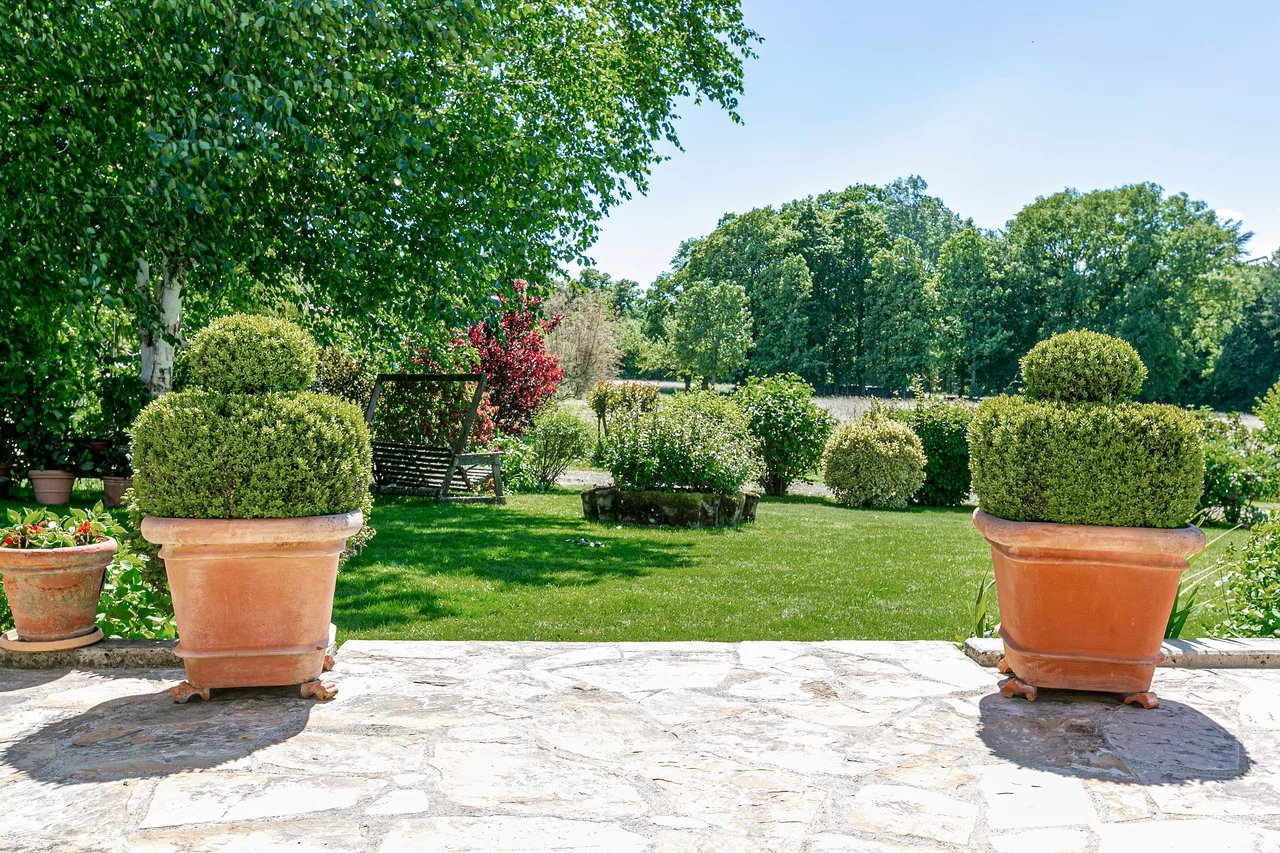Vaste jardin magnifiquement arboré. Barbecue agencé et belles terrasses.