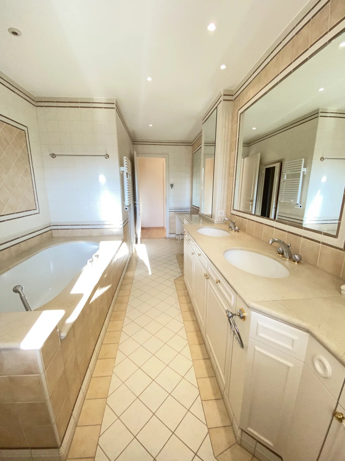 Offrant environ 300m2 de surface habitable avec 3 chambres et 3 salles de bains ainsi qu'un magnifique salon et une très grande terrasse de 60m2.