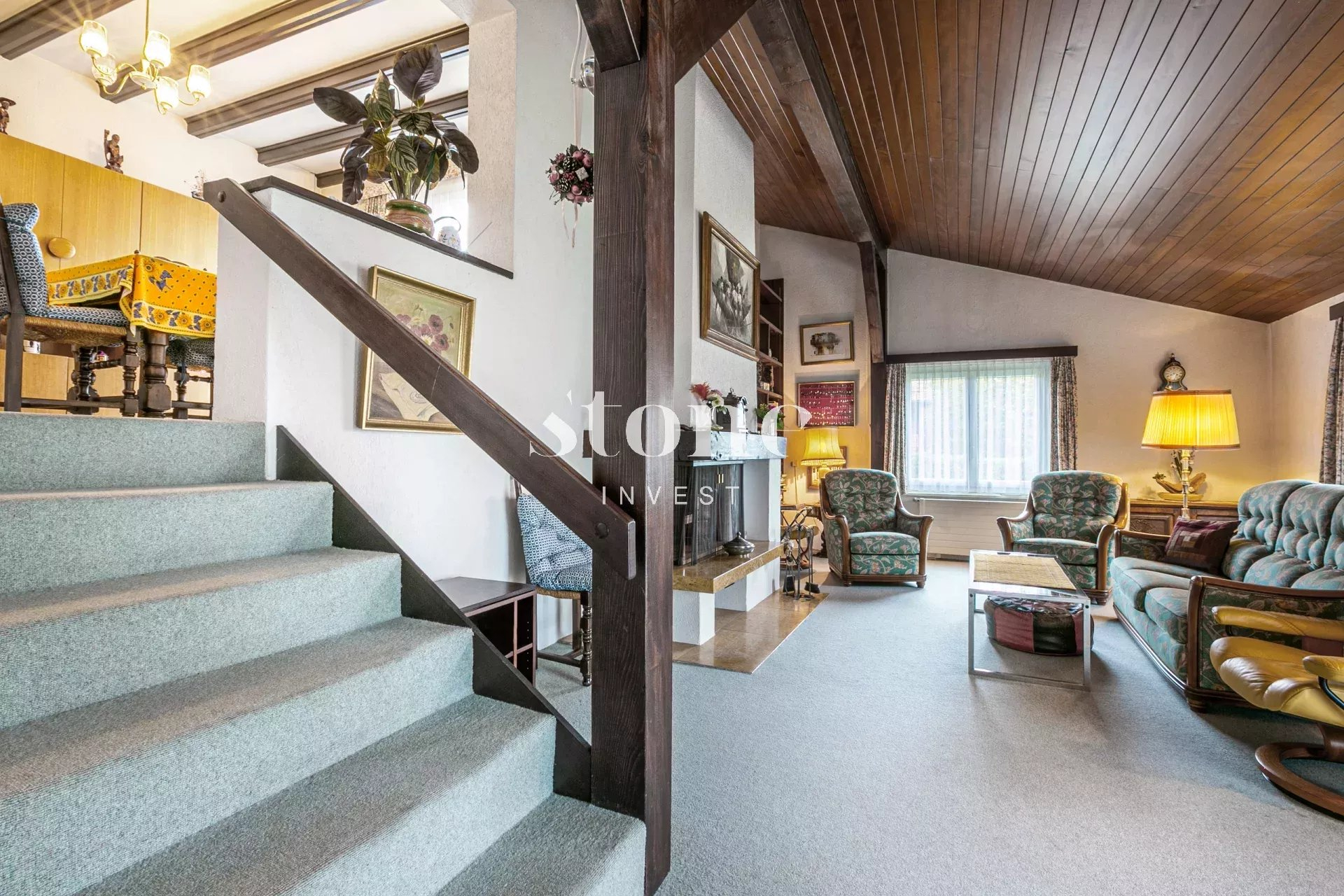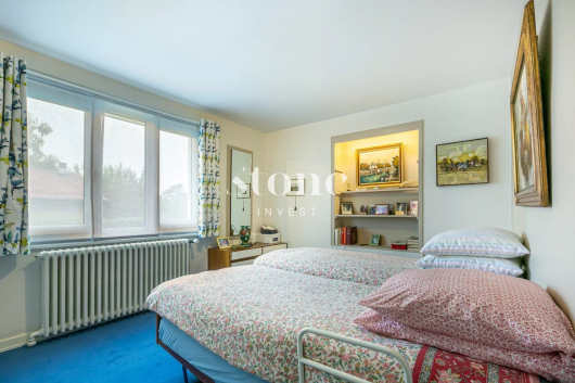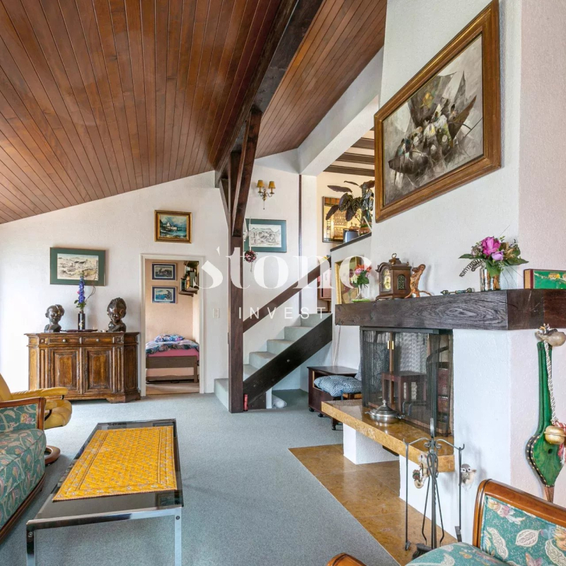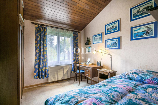 Rare à la vente ! Belle maison individuelle d'env 150m2 utiles sur deux niveaux. Située dans un quartier résidentiel très calme et à l'abri de toute nuisance, cette maison a été entretenue avec le plus grand soin. Elle nécessite néanmoins une rénovation ou remise au goût du jour, pour convenir à une nouvelle famille et aux attentes d'aujourd'hui. La villa est sise sur une belle parcelle d'env 1'100m2 entièrement arborée et plate. Il est possible de mettre une piscine avec un pool-house mais également de créer une extension afin de maximiser la surface habitable autorisée. Le coefficient étant de 0.20% il est possible d'obtenir env. 200m2 habitable.