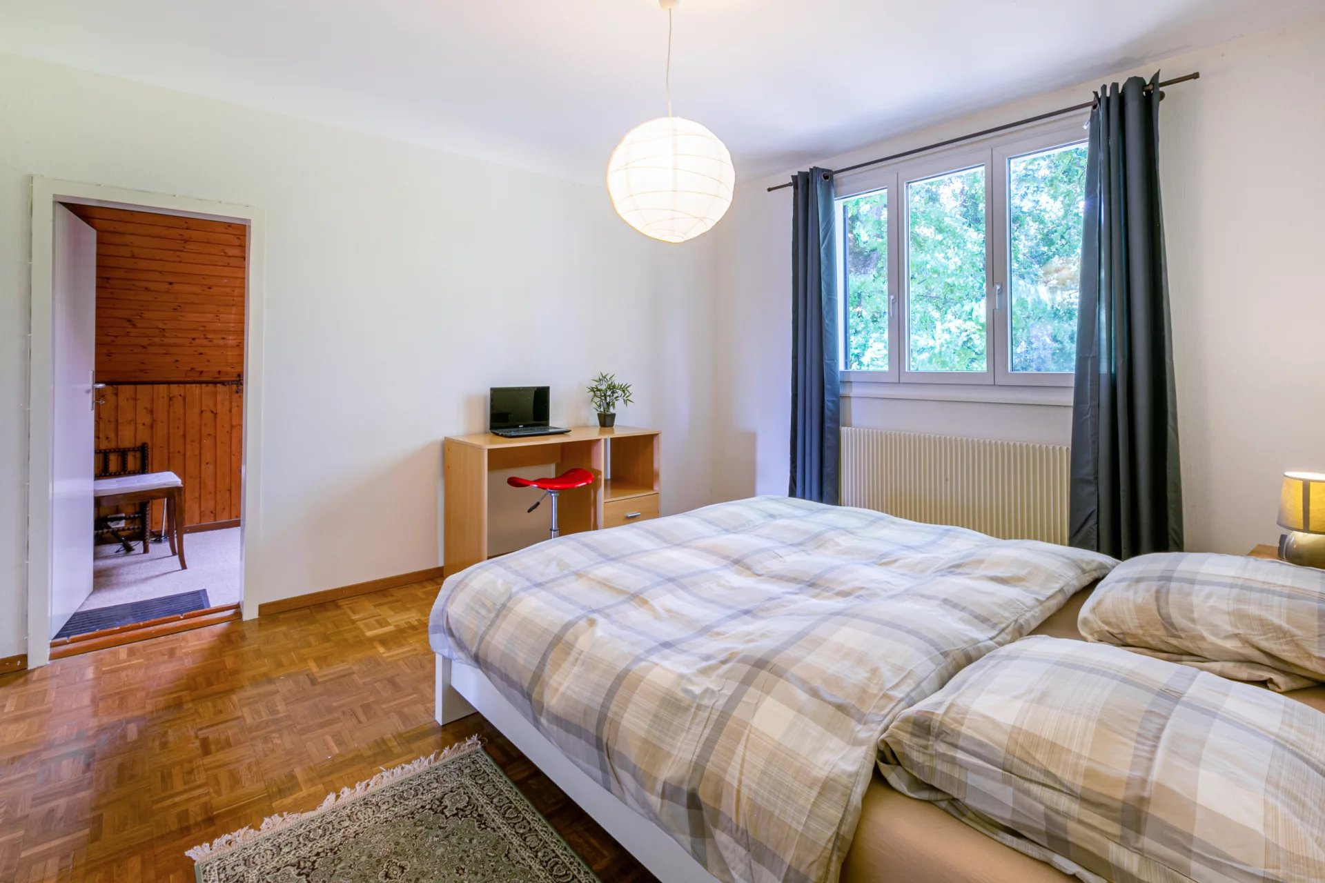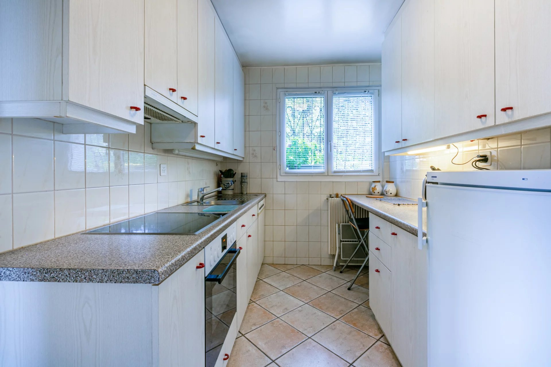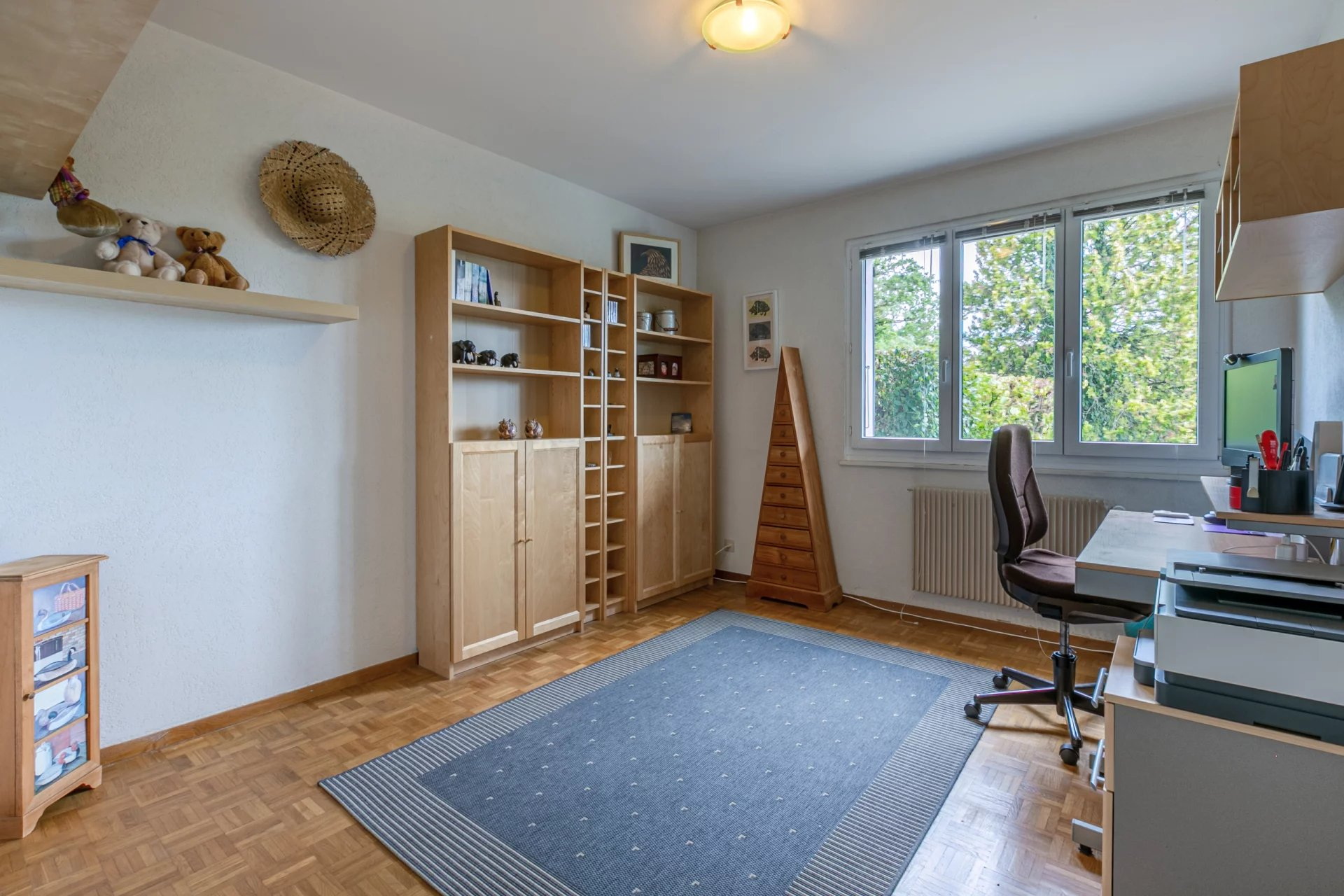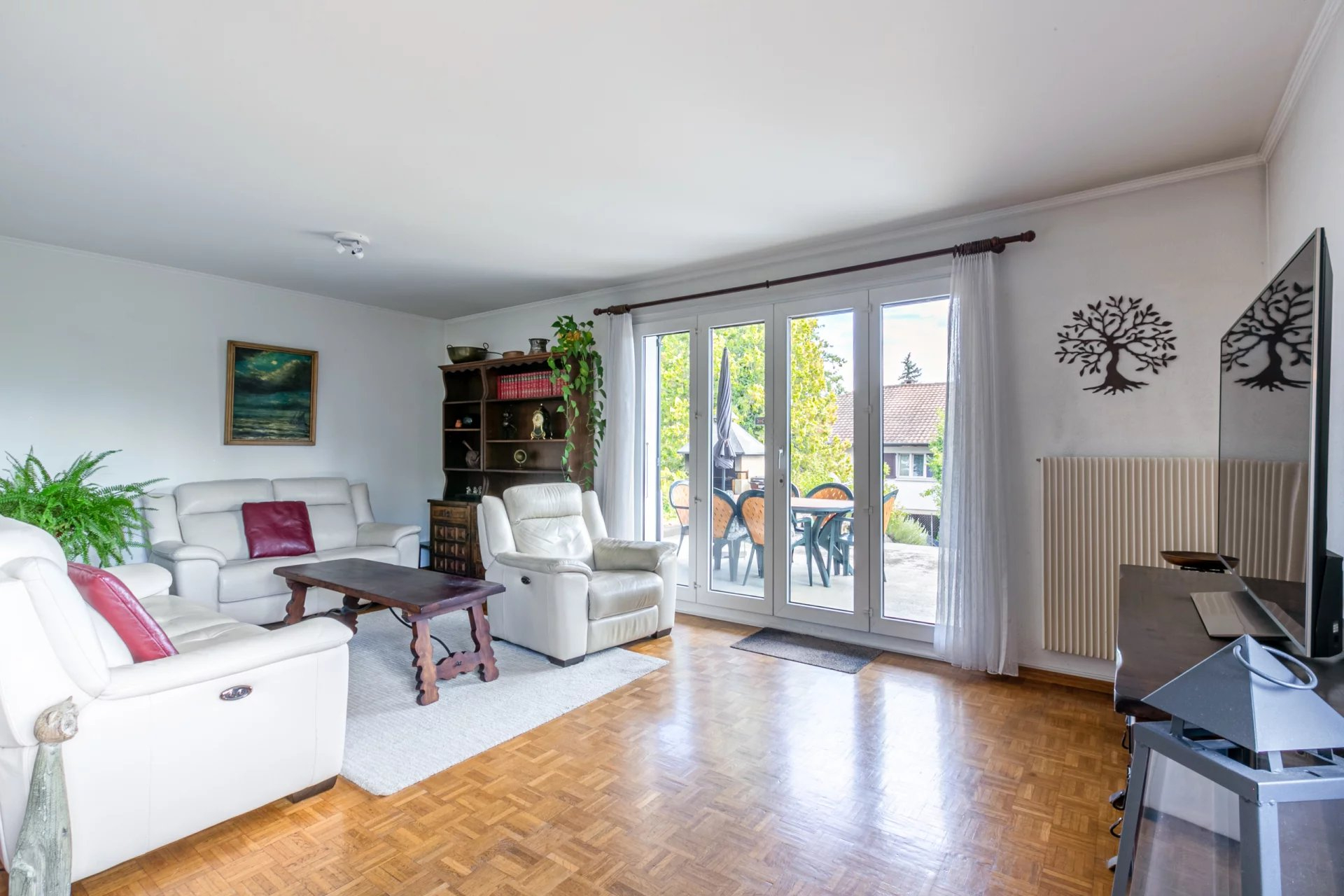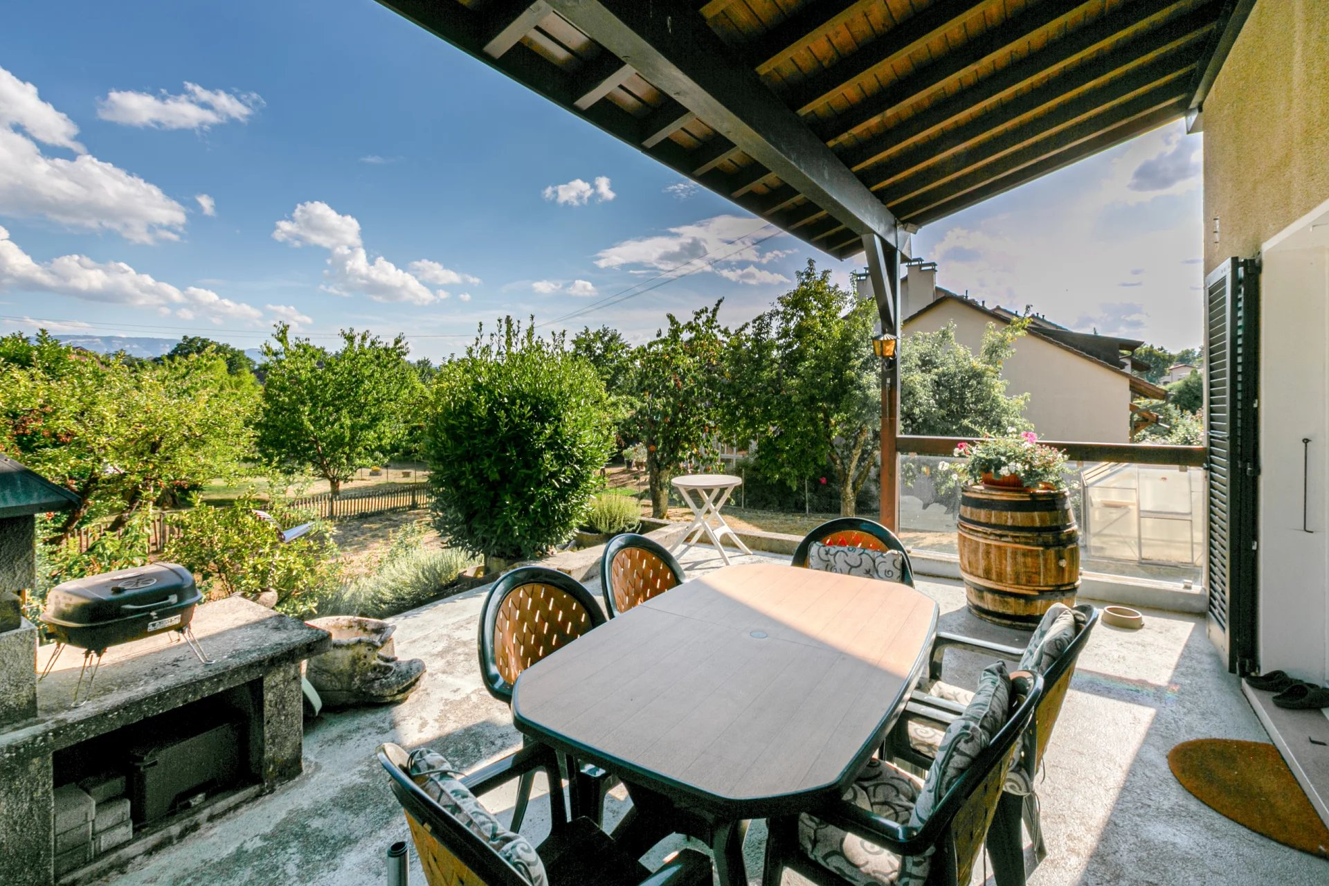 Le rez inférieur profitant de fenêtres à hauteur du jardin offre quand à lui un spacieux carnotzet, une pièce polyvalente, une chambre, une petite salle de bains, le local technique/ buanderie, une cave et un garage avec porte automatique