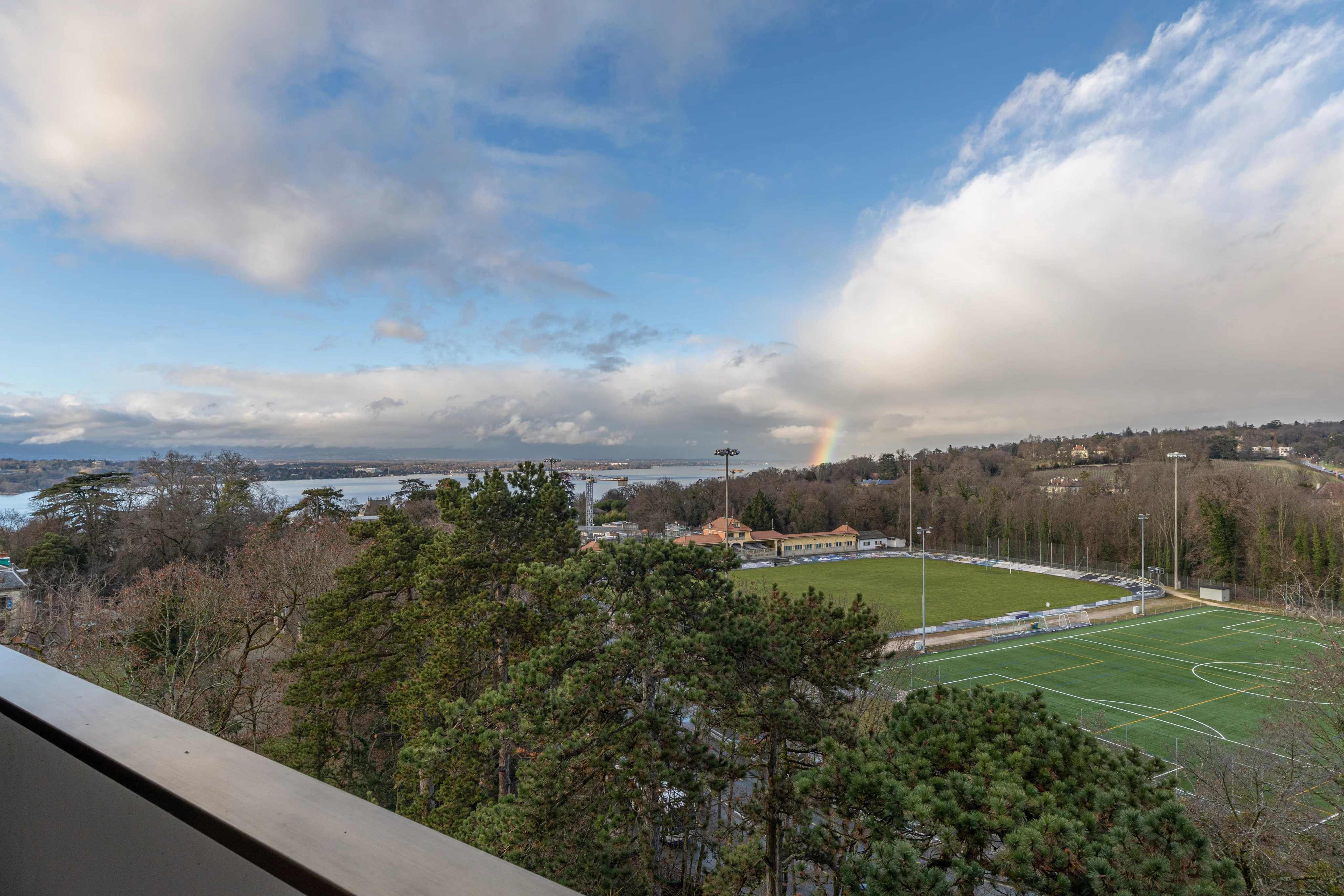 Situé dans une résidence de très haut standing à Cologny, cet appartement de 4 pièces en étage élevé bénéficie d’un environnement résidentiel recherché et d’une vue panoramique exceptionnelle, entièrement dégagée, sans vis-à-vis, sur le lac, les montagnes et la nature environnante.