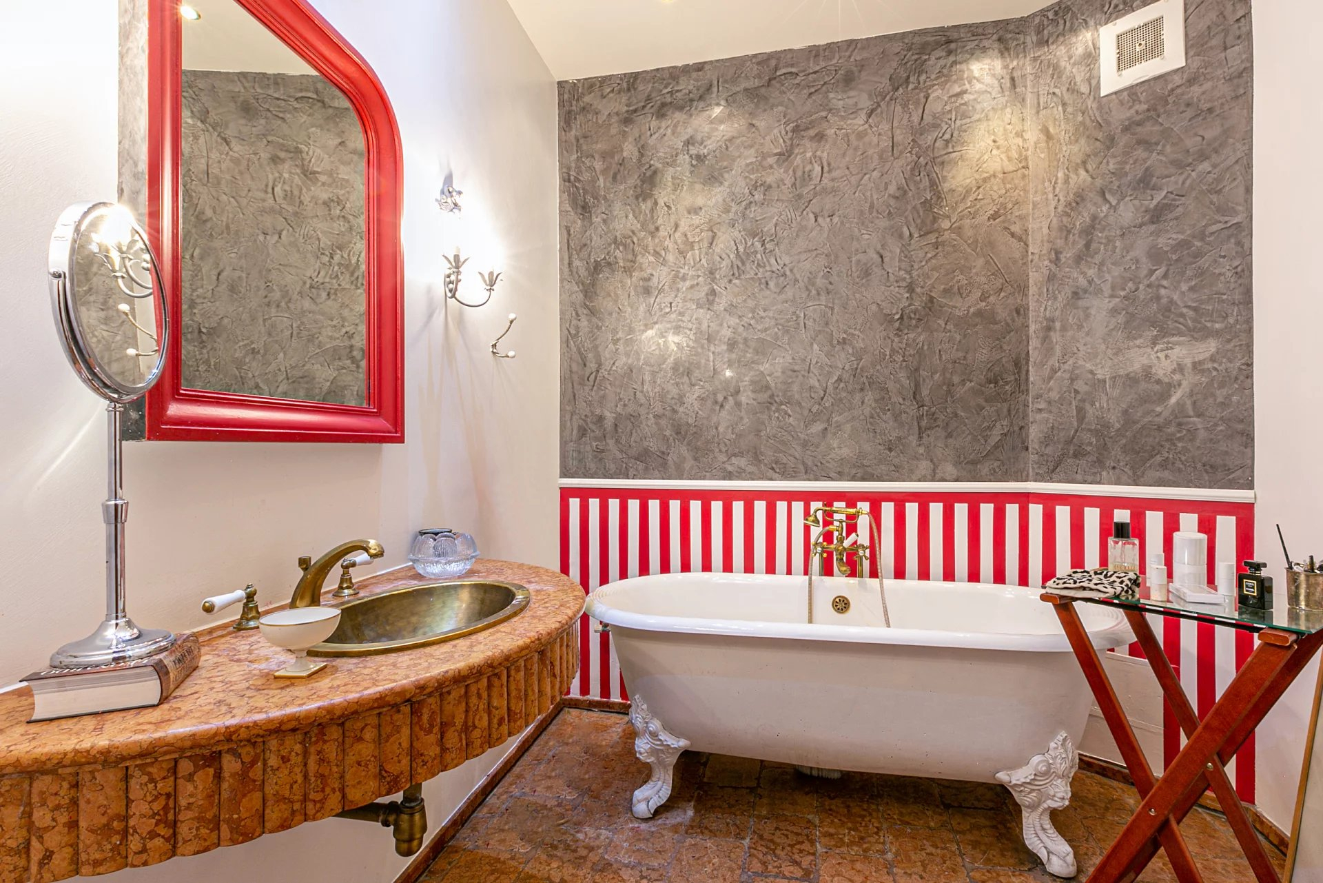 Aux 2 extrémités de l’appartement, 2 grandes chambres dont la parentale qui profite d’un dressing et d'une superbe salle de bains où se mélange le marbre de Vérone et baignoire Louis XIV authentique.