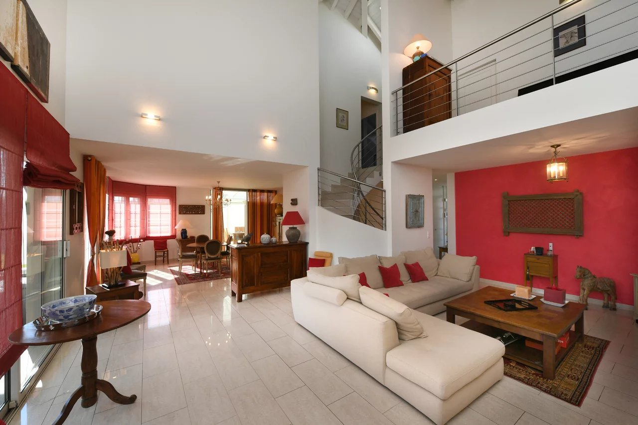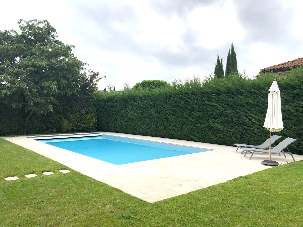 Grand double garage avec porte automatique, ,magnifique terrasse, grande piscine volet roulant de protection