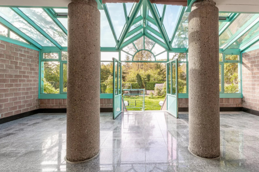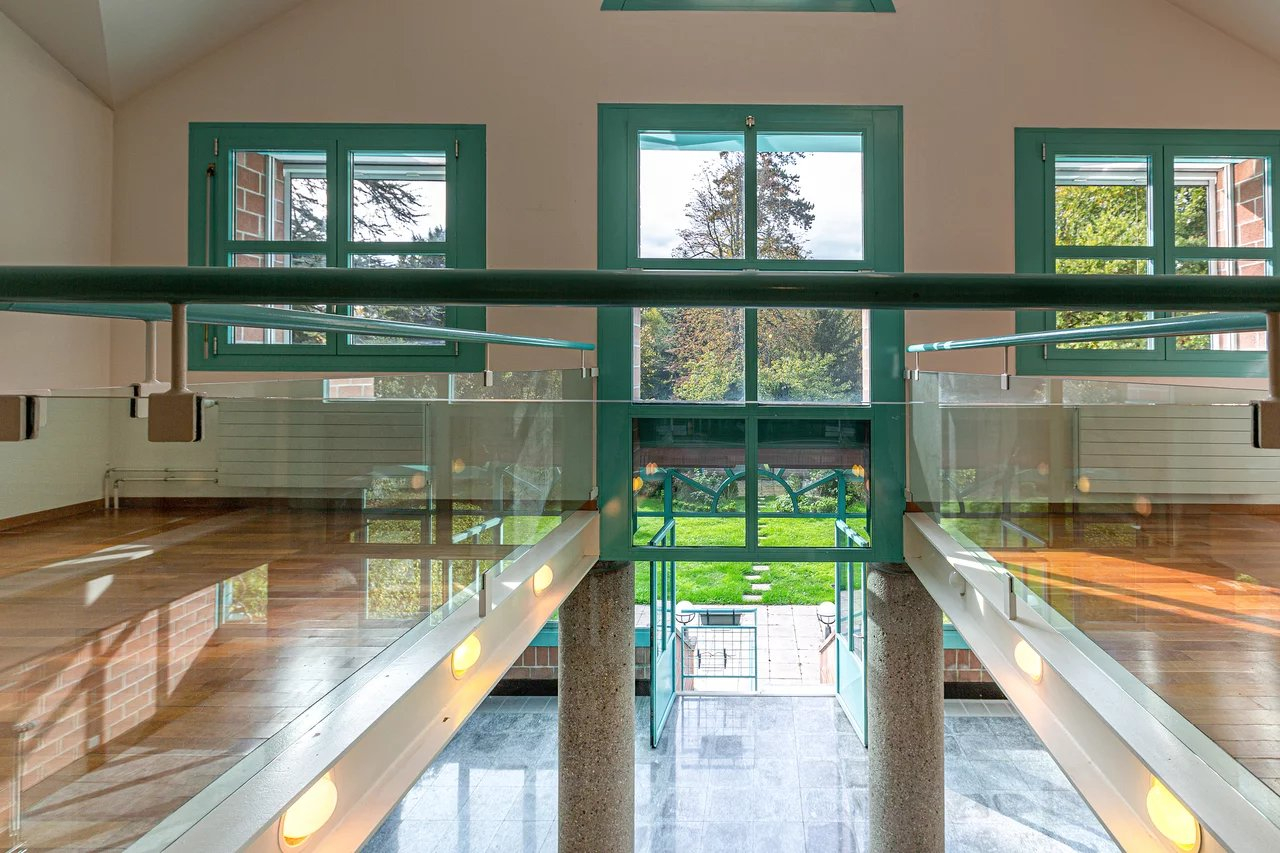 D'une surface au sol 114m2, elle offre au rez un vaste salon avec cheminée ouvert sur une véranda avec une parois entièrement vitrée, une cuisine aménagée, rénovée en 2010 avec des électroménagers de qualité, un bureau et un wc avec lavabo.