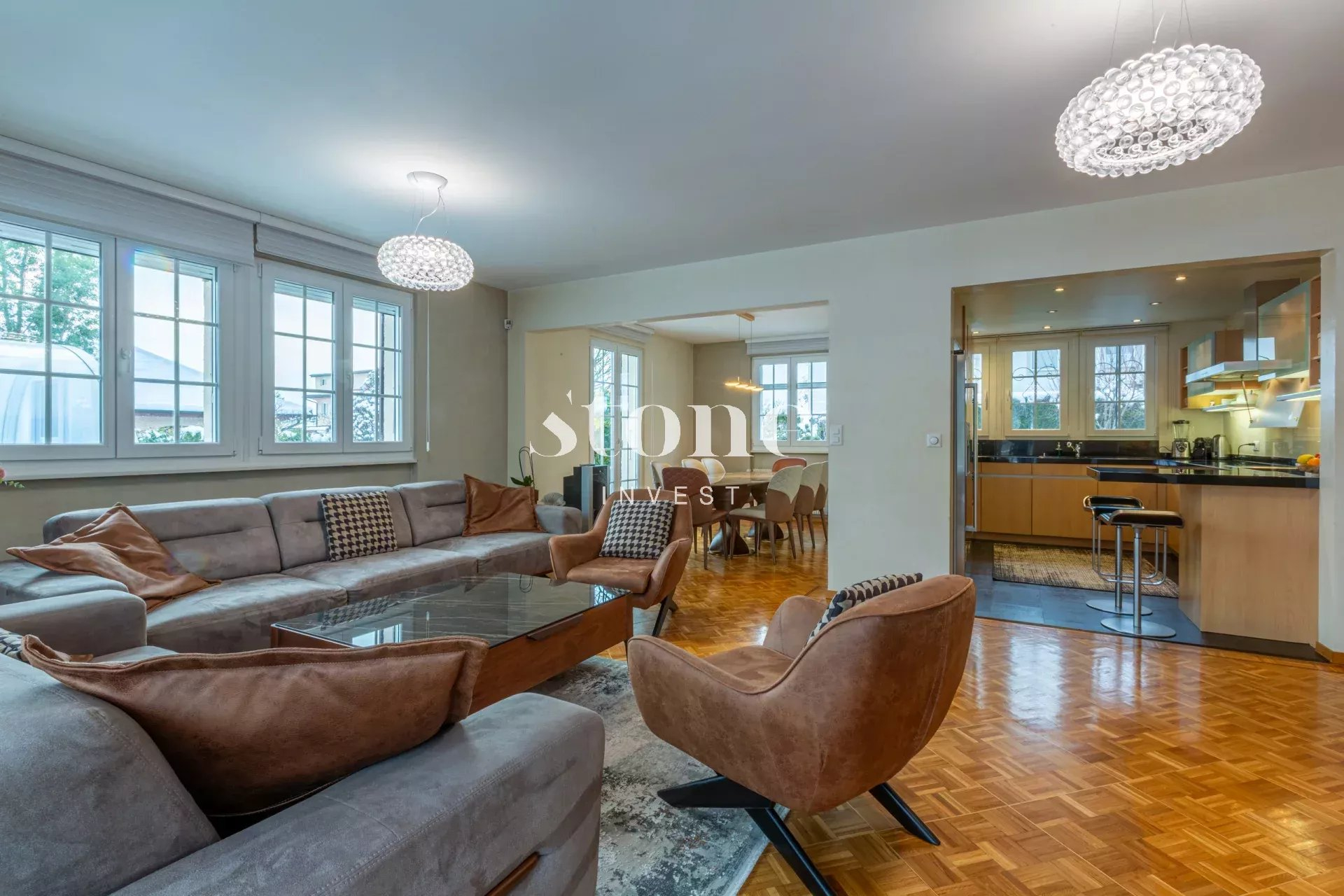 Si vous recherchez une maison clé en main avec 5 chambres, proche de l'école, des commerces et à 5 minutes de l'arrêt des bus, venez visiter sans tarder cette superbe maison individuelle avec spa jacuzzi! Rénovée en 2023 et avec pompe à chaleur neuve, elle est prête à accueillir ses nouveaux propriétaires! Dès votre entrée vous apprécierez ses espaces. Elle offre au rez un généreux salon avec cheminée à l'éthanol, ouvert sur l'espace salle à manger et la cuisine entièrement équipée avec des électroménagers de qualité. Du salon on accède à la terrasse qui entoure les pièces de vie et donne accès au spa jacuzzi. Toujours à ce niveau on trouve 4 généreuses chambres dont la superbe parentale de plus de 20m2 avec dressing et salle de bains en suite avec fenêtre. Une salle de bains avec baignoire ainsi qu'un toilette visiteurs complètent ce niveau. Au rez supérieur, avec velux automatiques, on trouve une très grande pièce actuellement utilisée comme deuxième salon, une 5ème chambre avec armoires et salle de bains en suite avec fenêtre. Le sous-sol avec des fenêtres à ras-le-sol, offre une très grande et lumineuse pièce actuellement utilisée comme salle de sport, un toilette avec douche, le local technique, une buanderie, la cave, la cave à vin et le garage pour 2 voitures. Plusieurs places extérieures complètent cette superbe maison à visiter sans tarder. N'hésitez pas, contactez-moi pour plus d'informations ou pour organiser une visite.