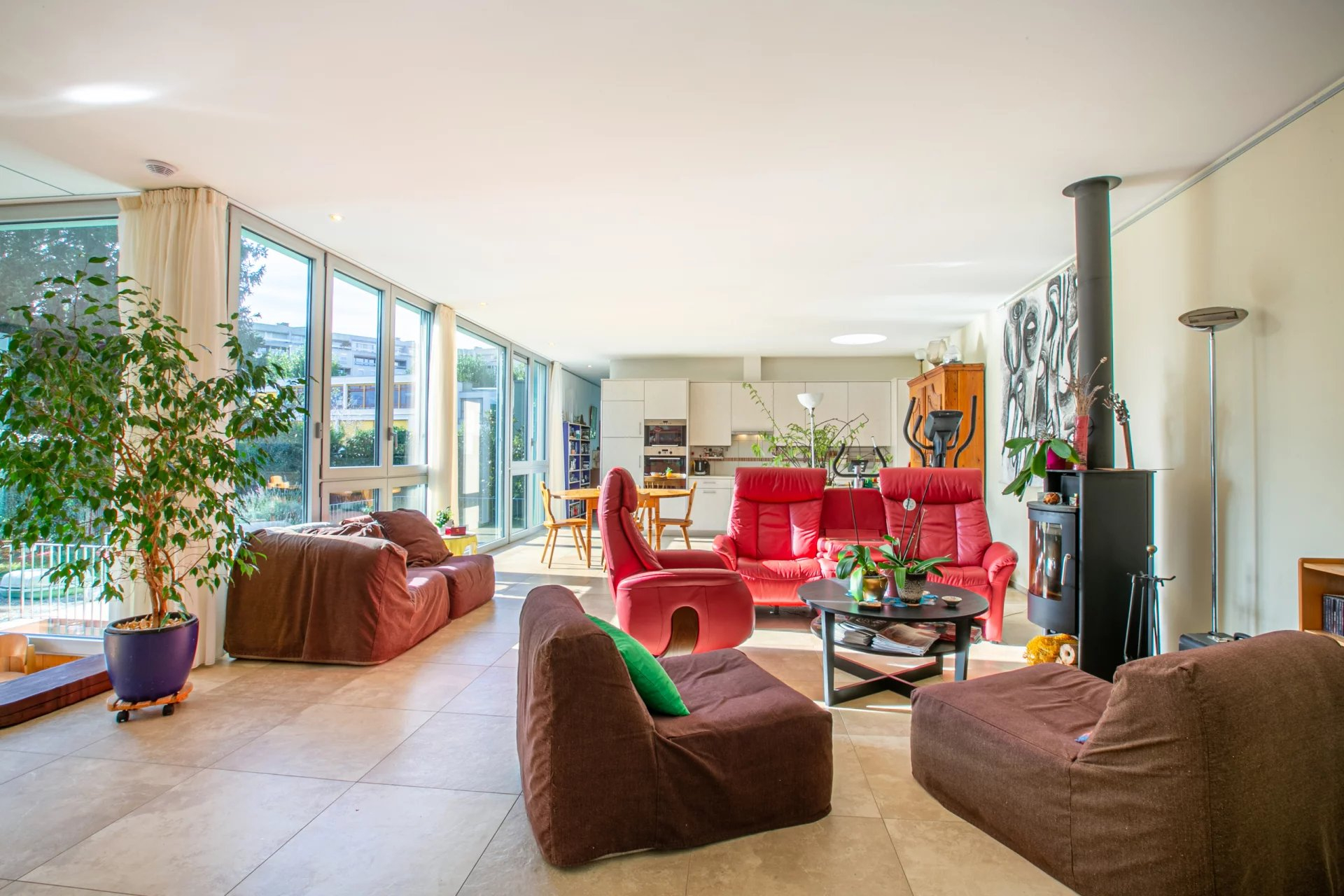 Baignée de lumière, cette superbe maison d'architecte construite en 2009 se distribue sur deux niveaux et offre 344m2 utiles. Ses grandes baies vitrées, ses puits de lumière ainsi que ses belles hauteurs sous plafonds lui confèrent volumes et luminosité.