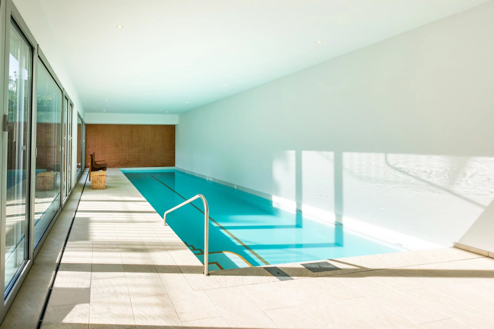 Au rez inférieur, totalement excavé et avec entrée indépendante, vous découvrirez une spacieuse chambre de 22m2 avec accès à un patio, une salle de bains avec douche ainsi qu'une superbe piscine chauffée avec nage à contre-courant. Le local technique avec coin buanderie et un abri complètent ce niveau.