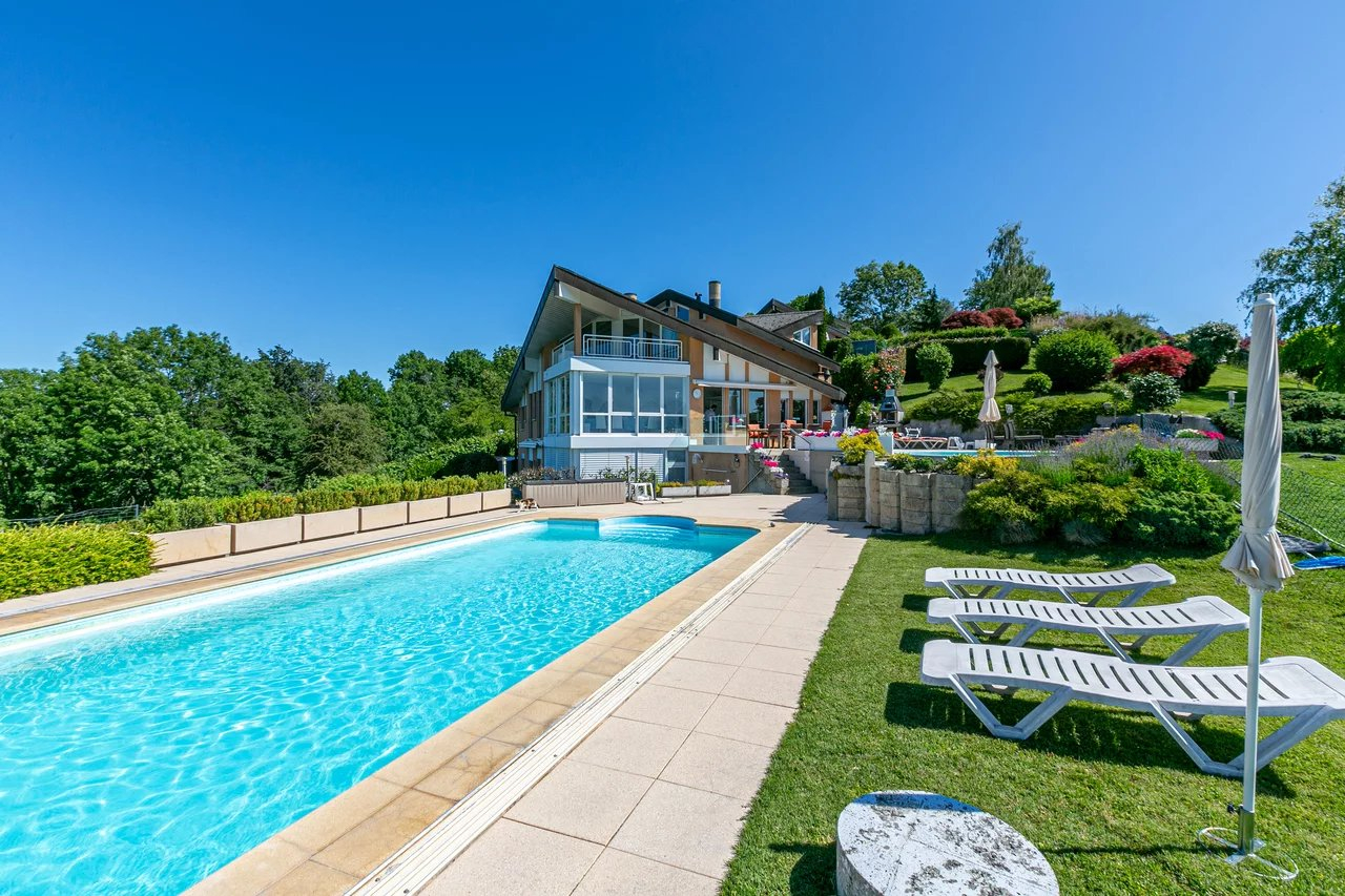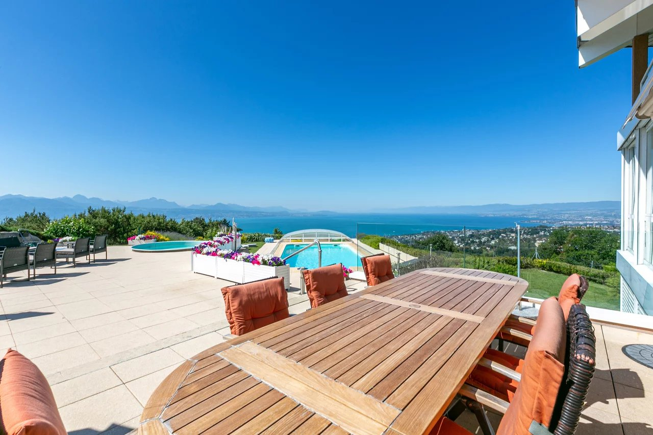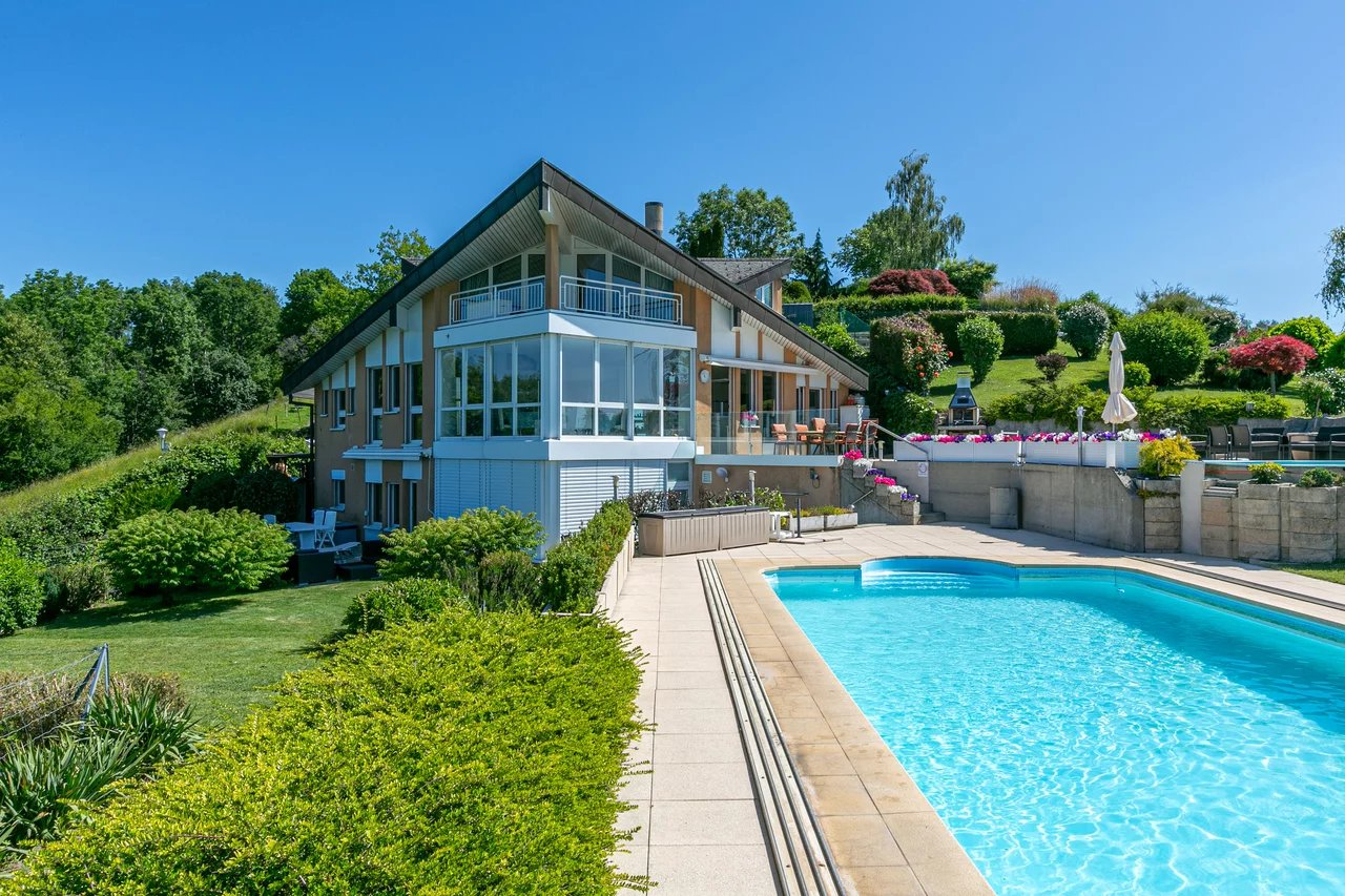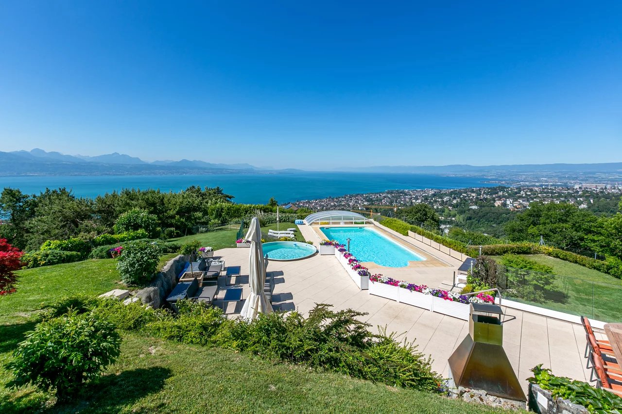 Située sur les hauteurs de Belmont-sur-Lausanne, cette propriété profite d’une vue panoramique extraordinaire sur le lac et les Alpes.